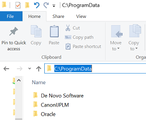 - Please note that the ProgramData folder is generally a hidden folder. Typing C:\ProgramData in any windows file browser will help you navigate to this location (Example below).