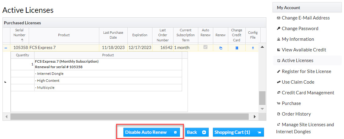 Please note that cancellations are not prorated to the time left remaining in the term. All sales of FCS Express are final according to our refund policy. Please contact support@denovosoftware.com for help or with any questions around subscription auto renew cancellations.