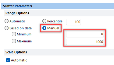 - Under Scatter Parameters and under Range Options, select Manual