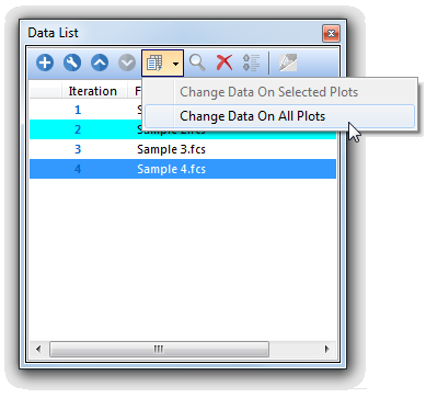 - Select a file, click on the Change File button in the toolbar and select the option to Change Data on Selected Plots.
