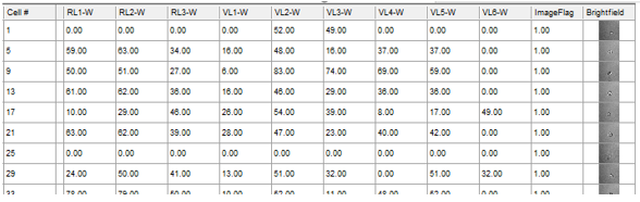 Note: In the Data Grid each cell has an ImageFlag and Brightfield column.