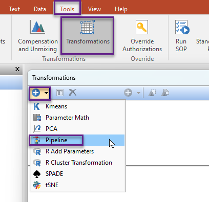 - Click the Tools tab > Transformations.