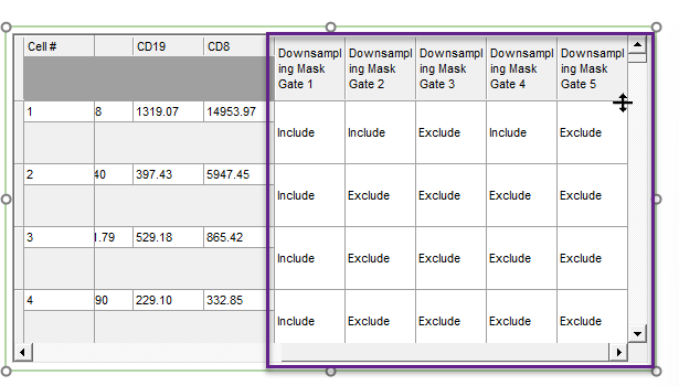 - The data grid contains one row per event, in the order of acquisition. under a particular column, "Include" indicates that the event in that row is included in the Gate. For example, in the screenshot above, cell 1 is included in Gate 1, Gate 2 and Gate 4. Cell 1 is excluded from Gate 3 and Gate 5.