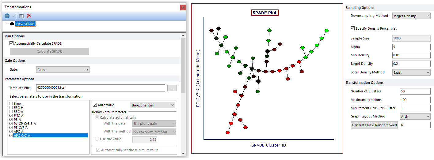- SPADE analysis in FCS Express is completely integrated with the layout, meaning that the user can draw gates on SPADE plots to select one or multiple nodes for downstream analysis. Similarly, gates drawn on classical dot plots can be applied to SPADE plots as well.