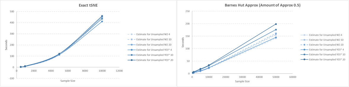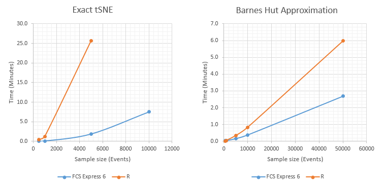 To give you an idea of how t-SNE is performing within FCS Express, we have run some speed tests to show how the two methods that are used to calculate t-SNE compare with each other in version 6.