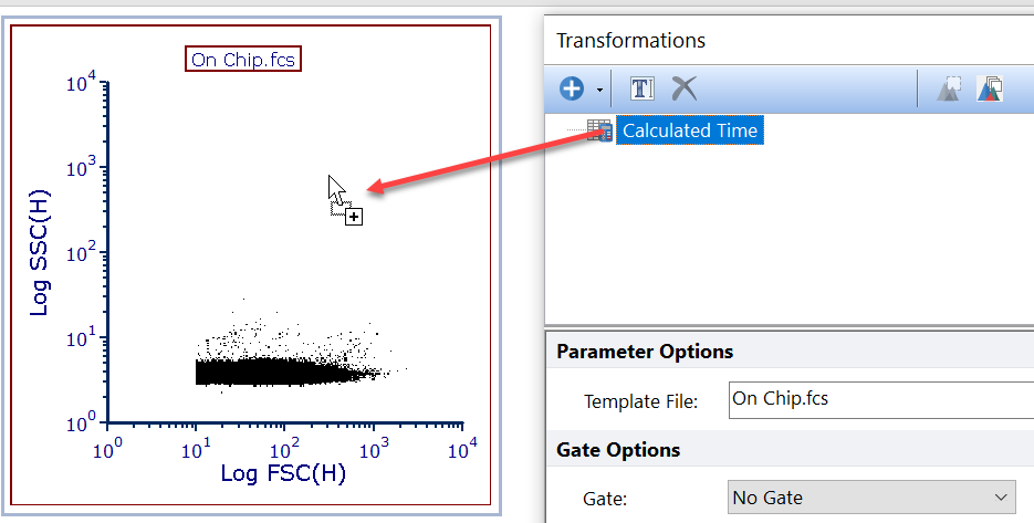 | 28. To apply the Parameter Math to your data, drag the transformation onto a plot. | ![]() |