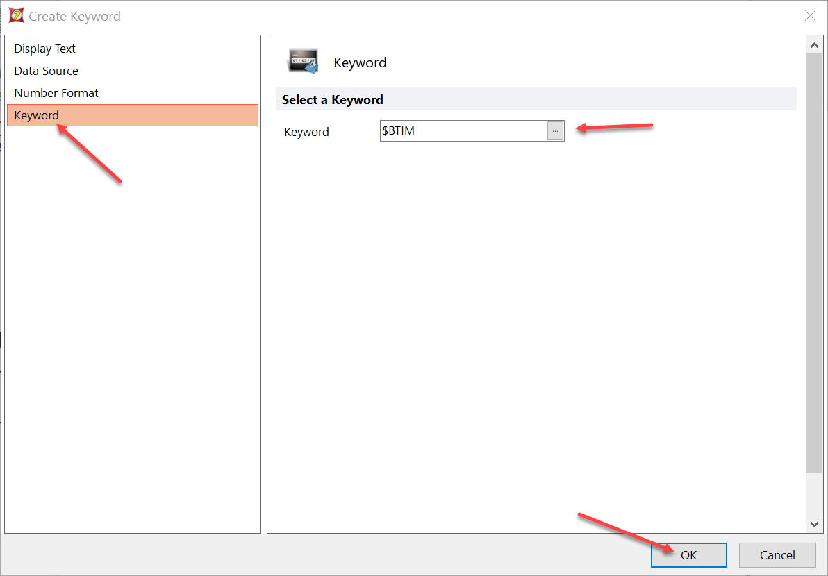 | 11. In the Create Keyword window, select the Keyword category and then either type the keyword $BTIM in the field or click on the ellipsis to browse for the keyword within the data file., then click OK. | ![]() |