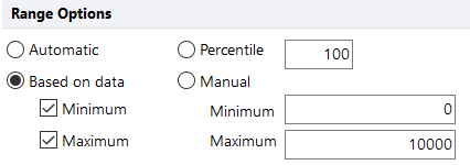 Ranges may be set to automatic, percentile, or manually-defined minimum and maximum (below) for both Scatter and Fluorescence Parameters.