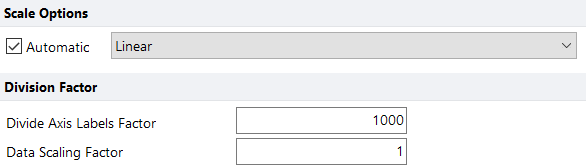Scaling may be set to automatic or a manual selection with defined division factors.