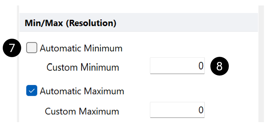 7. Under Min/Max (Resolution), uncheck the box next to Automatic Minimum.