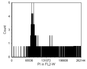 Lowering the resolution bins more data channels into a single plotted channel. Even though the labels on the axis stay the same, the number of bins that are underlying the histogram are different. For instance, in the plot on the bottom (1,024 channels), there are 256 data channels in a single plot channel. i.e. any data values falling into channel 0-255 in the list mode data file will be plotted in channel 0 on the plot. The counts on the Y axis are increasing, because more cells are being binned together in an individual channel in the plotted histogram. When comparing histograms from different data files, it is important to make sure that the resolution they are plotted in is the same.