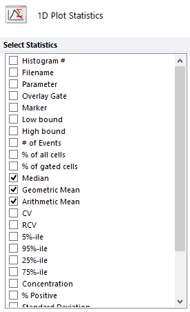 For univariate (1D) plots, such as histograms, you can choose to display either the Arithmetic Mean, the Geometric Mean, or the Median, for the X-axis parameter.