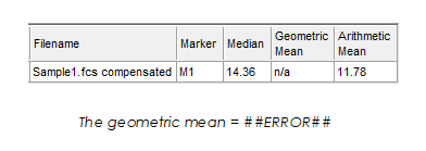 - If a population contains any events that have a negative raw value, FCS Express will display the geometric mean for that population: