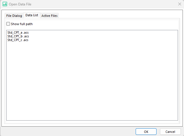 5. Select Add using Standard Open Data Dialog (opens the dialog shown above) or Add using Advanced Open Data Dialog (shown below) that allows for the user to select data files from the Data List by activating the Data List tab (5).