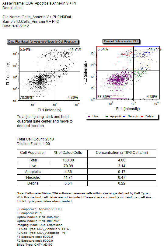 Download and view the layout using the free FCS Express Reader: Nexcelom Apoptosis Assay.