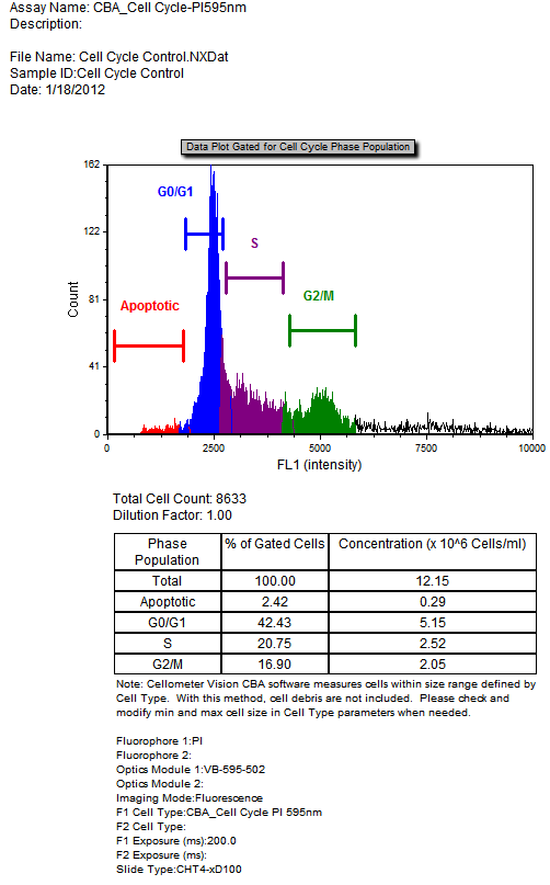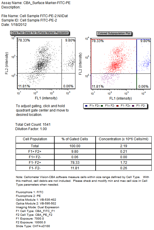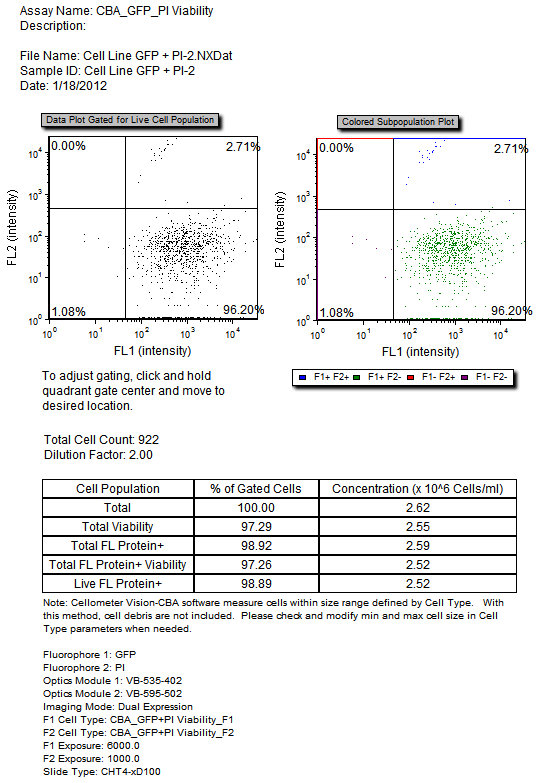 Download and view the layout using the free FCS Express Reader: Nexcelom Fluorescent Protein Viability Assay.