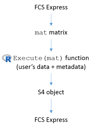 Full details on the specifications for R scripts running in FCS Express can be found in the FCS Express Manual R Integration Section while the general workflow of R Integration in FCS Express is outlined below.