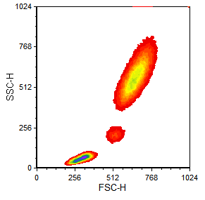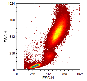 | Density Plot Saved in FCS Express 3. | Density plot saved in FCS Express 3 and opened in FCS Express 4. Appears with outliers (top) appears without outliers (bottom). | Density plot saved in FCS Express 3 and adjusted for display in FCS Express 4. |