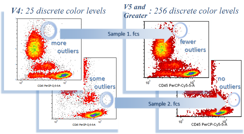 - Why are there fewer outlier dots on my FCS Express 5 and later density plots than in V4?