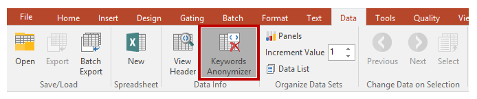 To anonymize keywords, click on the Keywords Anonymizer button from the Data tab: