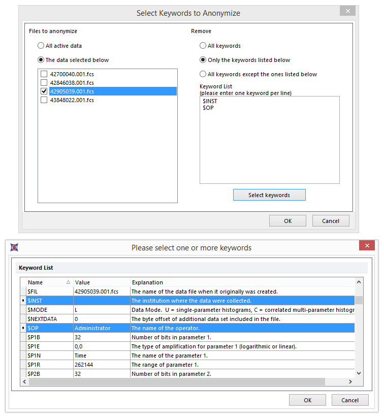 You will then be able to select which .fcs files to remove keywords from and which keywords to remove.
