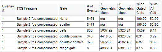Many different statistics are available, including percentiles, percent parent / grandparent, and robust CVs, as well as all of the basic statistics needed for data analysis. You can also have "percent positive" and sample concentration calculated directly on the statistics screen. All statistics can be dragged and dropped to any location in the layout, dragged and dropped into an integrated spreadsheet, or copied to the clipboard for easy pasting into any Windows® program. Additionally, statistics can be added to your exports in a Batch Process of your entire dataset.