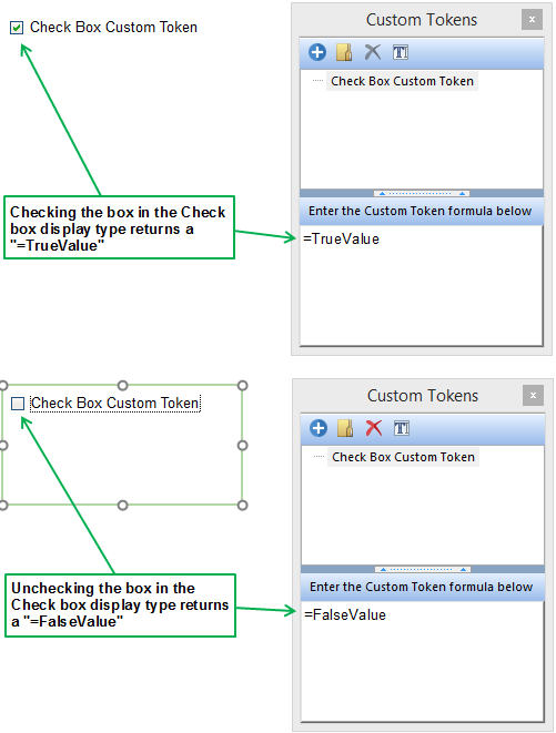 FCS Express also provides custom tokens to create custom calculations and display types from which you can insert edit boxes, dropdown lists, and check boxes directly on the layout.