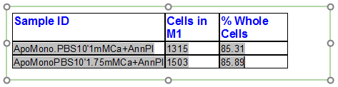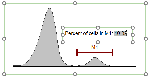 Tokens may be inserted anywhere in the layout, such as text boxes, plots, and spreadsheets. In the example below, tokens are the text highlighted in grey, displaying keywords from the sample for the Well ID, name of the cytometer used for data collection, and date of acquisition as well as the statistic for percentage of events in the red gate from the plot on the right: