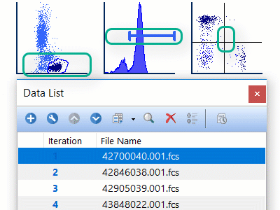 Batch process enables analysis of many samples using the same gating strategy. Set up your analysis strategy with necessary samples and let FCS Express iterate through all your files rapidly.