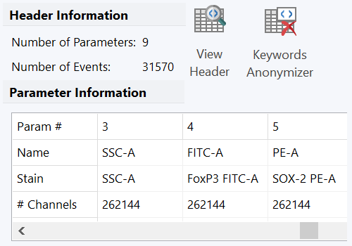 A flow cytometry FCS file contains a section known as the header which contains information about the data, including the names of the parameters, the amplification method, acquisition date and time and many other information. With other software packages accessing this information can be tricky and using it annotate your analysis can be even harder. FCS Express allows you to view, change, and use any of the information contained in the header and to save the changed information in with the file.