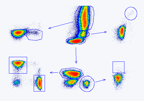 Gates can also be applied to, and created on, raw data at the single cell level which is particularly useful for image cytometry data set . Raw data, either numeric values and single cell pictures, can be displayed, gated, and managed including full back gating capability.
