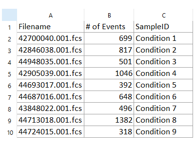 Values in Spreadsheet cells may be derived directly from any gate or statistic, keywords, or from all your flow cytometry data files with one drag and drop. Spreadsheet cells are easily filled by dragging and dropping your data files or statistics right into the spreadsheet.