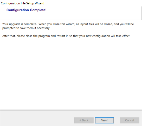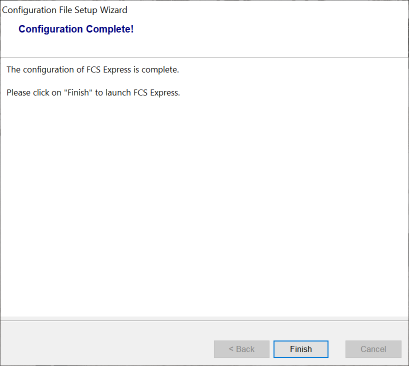 - FCS Express has finished copying the configuration file. Click Finish to obtain your new extension and to continue using FCS Express.