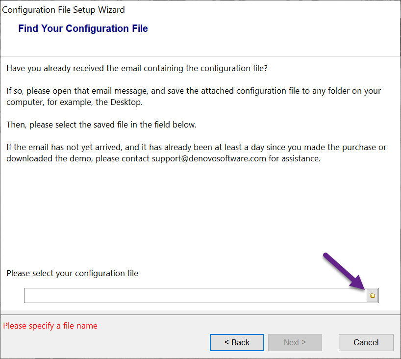 3. Click the folder icon to browse to the new configuration file.