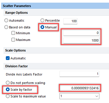 - Under Scatter Parameters and under Range Options, select Manual