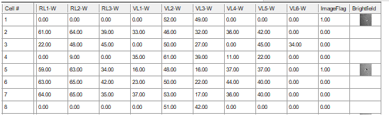Note: In the Data Grid each cell has an ImageFlag and Brightfield column.