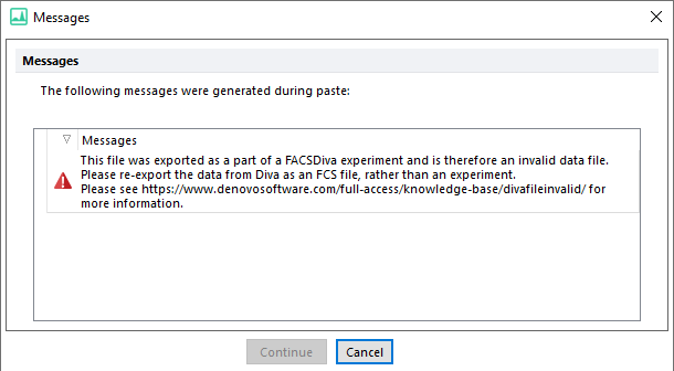 - Why do I get the message that a data file exported from a FACSDiva™ Experiment is invalid?