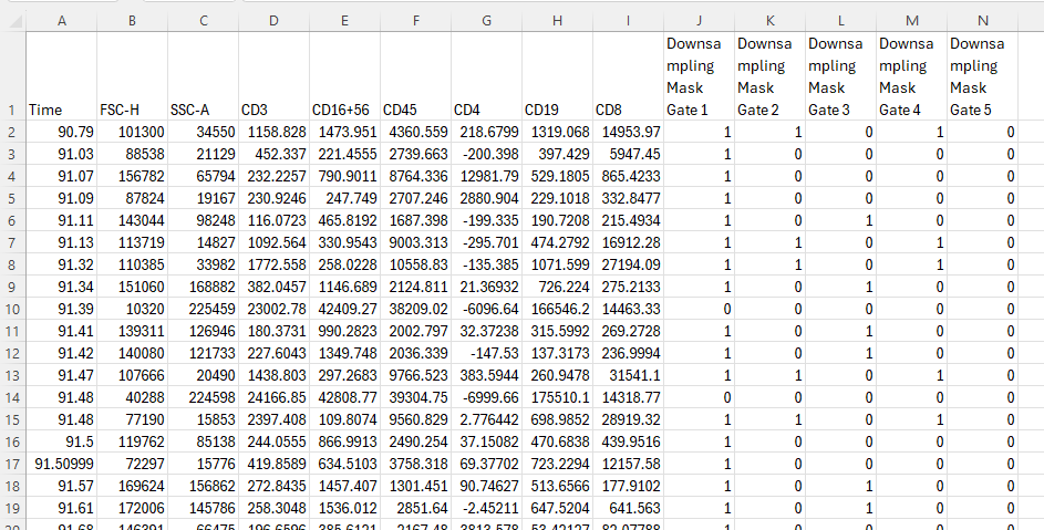 - Please note that there will be separate columns if the gate information is exported as a classification value (Include/Exclude) and a number value (0/1).