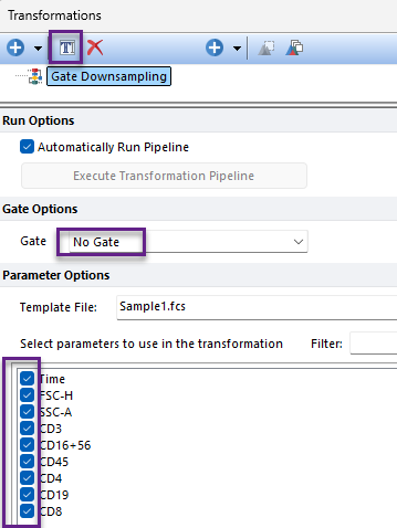 - For Save with transformtion, select the pipeline that you created. It is named Gate Downsampling in the example below.
