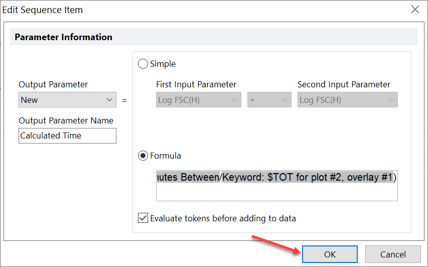 | 19. Within the Create New Sequence Item window, enter Calculated Time for the Output Parameter Name. | |