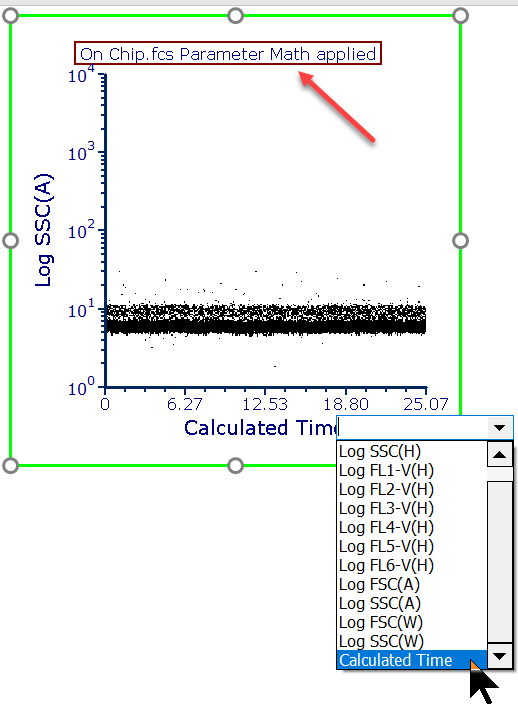 | 29. The title of your plot should now reflect that Parameter Math has been applied. The new parameter can now be selected from the X or Y axis. | ![]() |
