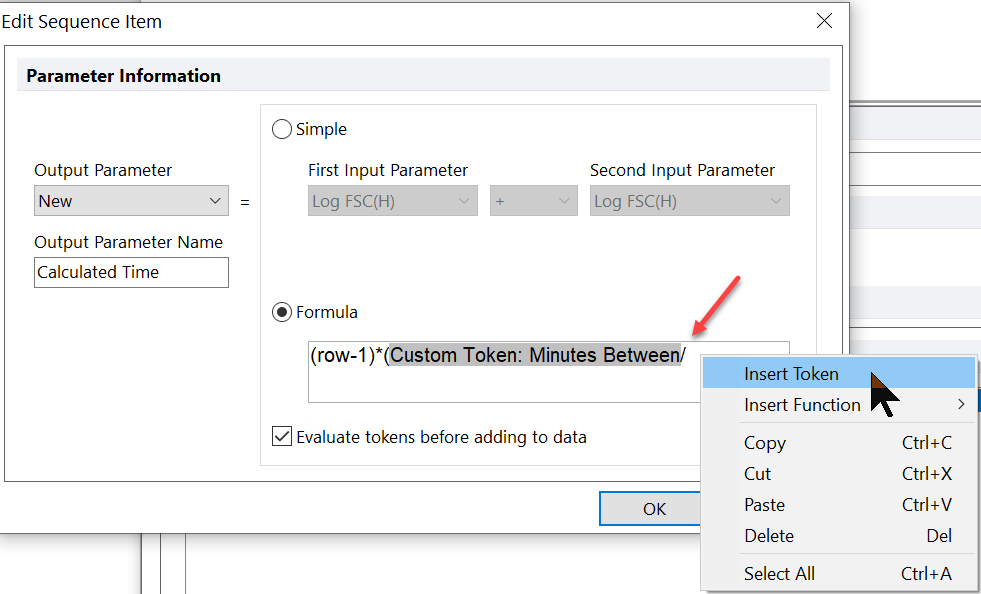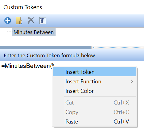 | 6. For the custom token formula, add an = sign, then right click to select the Insert Function menu. | ![]() |