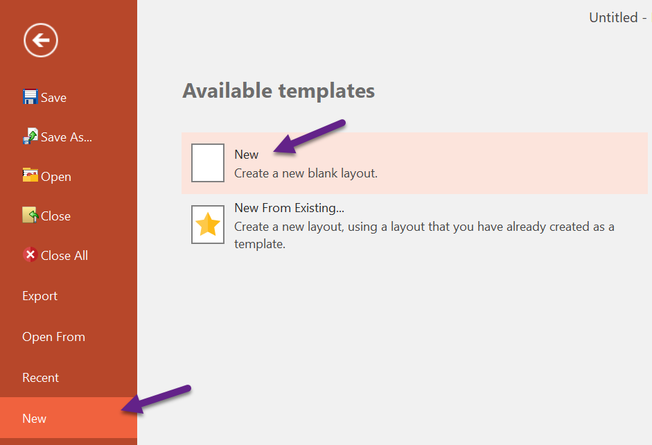 | 1. To get started, open a new blank layout by going to File > New > New. | ![]() |