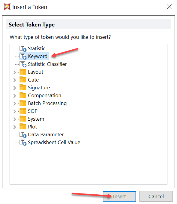 | 10. Select Keyword from the Insert a Token window and then click Insert. | ![]() |
