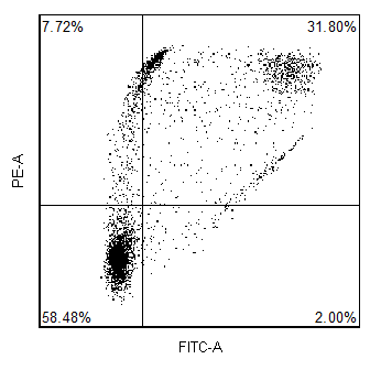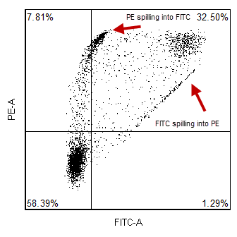 The dial would typically be labeled something like:. FL2-%FL1, or PE-A-% FITC-A. Where FL2 is the total amount of fluorescence observed or measured in the FL2 channel and the %FL1 is the percentage of fluorescence measured in the FL2 channel that is from the FL1 fluorochrome. By changing the dial or adjusting the setting, the user is changing the amount of fluorescence from the FL1 or FITC parameter to subtract from the total fluorescence measured in the FL2 or PE parameter. For example, if the FL2-%FL1 or PE-A-% FITC-A value was 20, this means that the true FL2 value is the observed FL2 value minus 20% of the observed FL1 value.