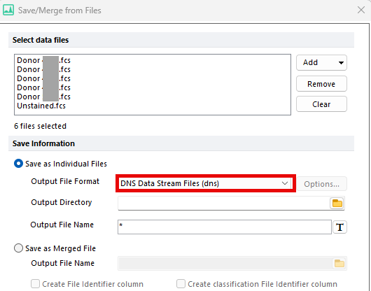 - Select the options that you prefer, and set the Output File Format to FCS Files (fcs).