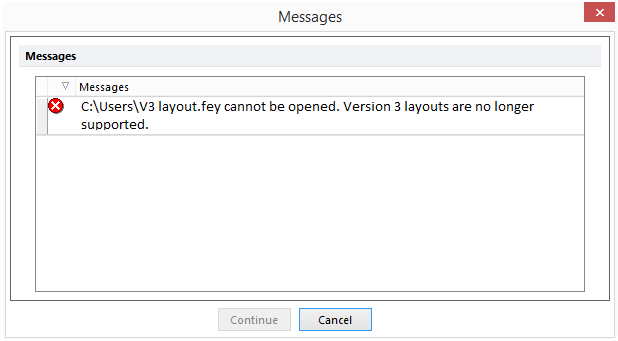 If you attempt to open a V3 layout in FCS Express 7, you will get the following message: