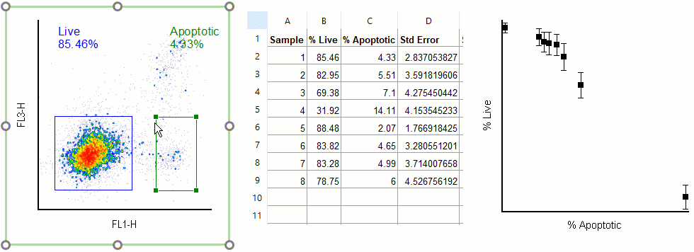 - Quickly create bar graphs by dragging-and-dropping gates or statistics to an empty bar plot or spreadsheet.