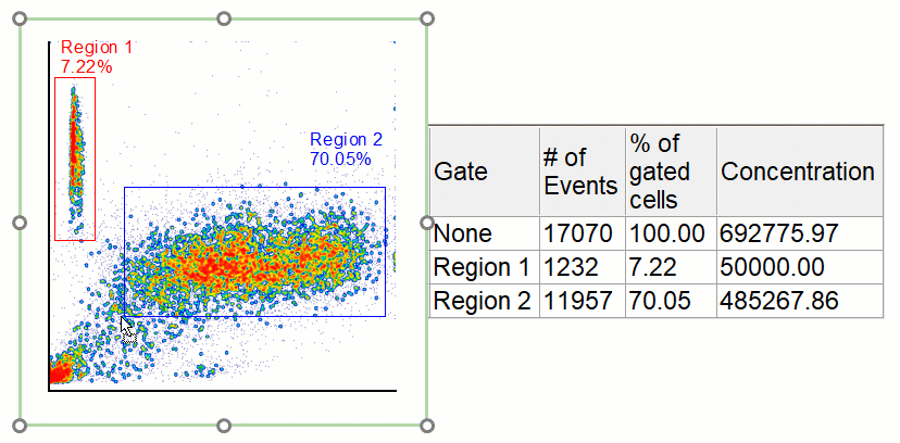 You can even have the concentration shown directly on the statistics window of any plot. When a gate is moved on your plot the concentration statistics will update automatically as well.