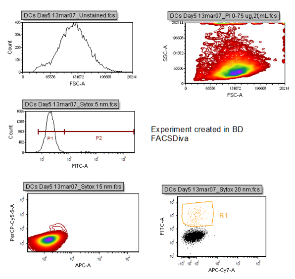 Once your Experiment is loaded into FCS Express, you can treat your plots just like a plot created in FCS Express (to see how it works, check out our Tips for Importing FACSDiva Experiments section below). In Figure 1 below, you see an Experiment created with BD's FACSDiva software. Figure 2 shows how the Experiment was successfully loaded into FCS Express.
